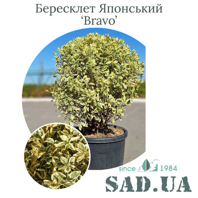 Бересклет Японский Bravo 80-100см, (ф. куля), конт. 90л (euonymus japonicus Bravo) в контейнере с грунтом. Месторождение растения Импорт. Бересклет предпочитает солнечные места , требует среднего количества воды и переносит температуру до -20 градусов. Неприхотливые к почве, подойдет любая универсальная садовая почва или чернозем. Консультанты нашего садового центра всегда рады ответить на ваши вопросы и помочь с выбором!